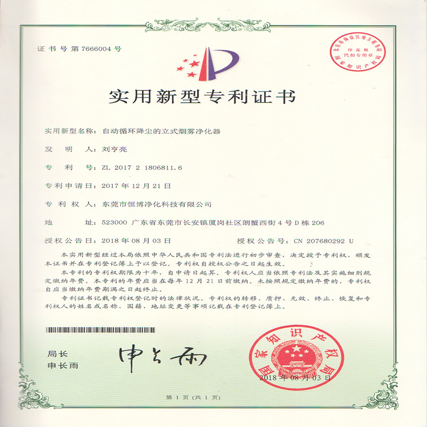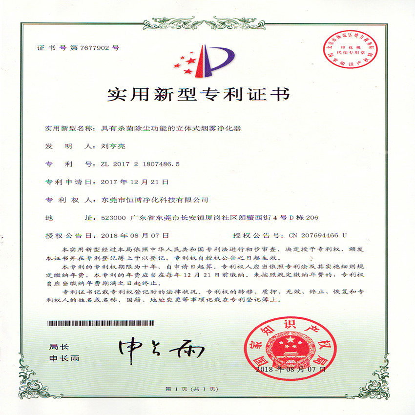 公司擁有專業的設計人才,專業致力于空氣凈化及煙霧凈化產品的研發、生產。